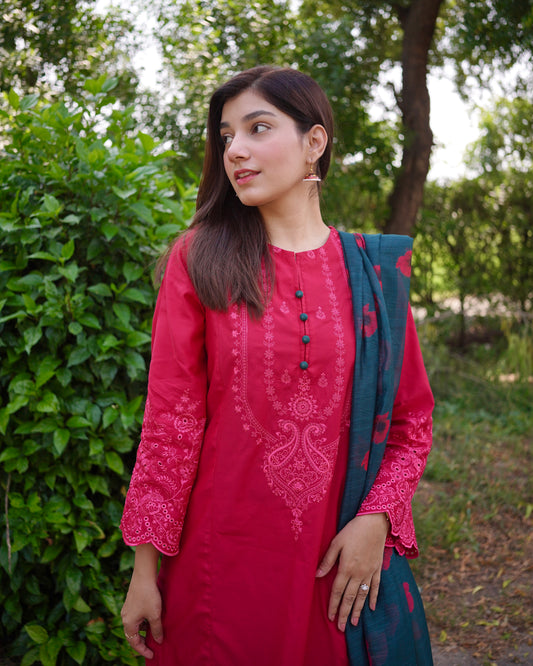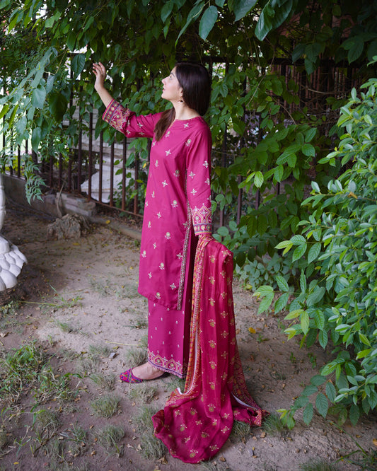 Magenta Charm 3-Piece Embroidered Cambric Lawn Suit | ZM-36