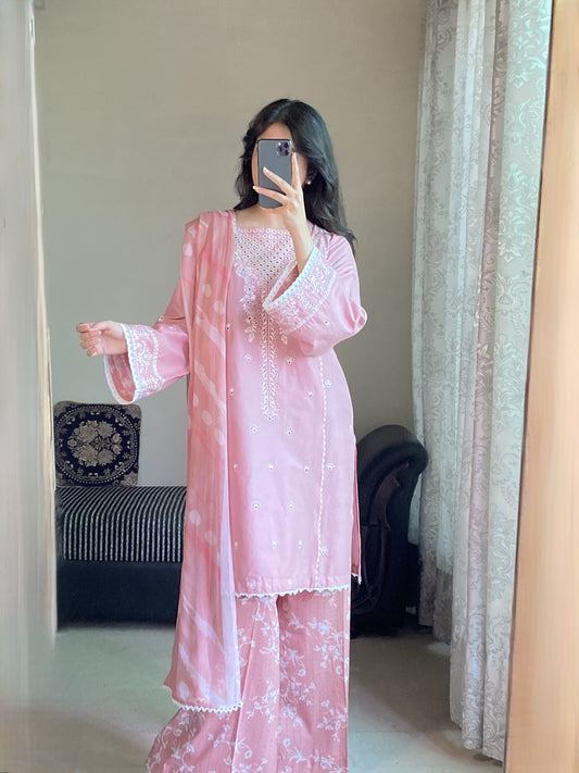 Pink 3-Piece Embroidered Cambric Lawn Suit | ZM-33