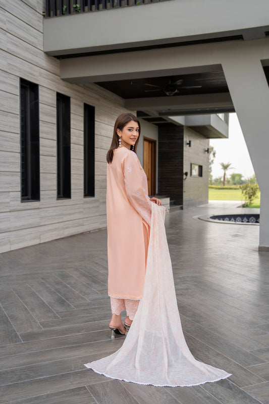 Peach 3-Piece Embroidered Cambric Lawn Suit| ZM-23