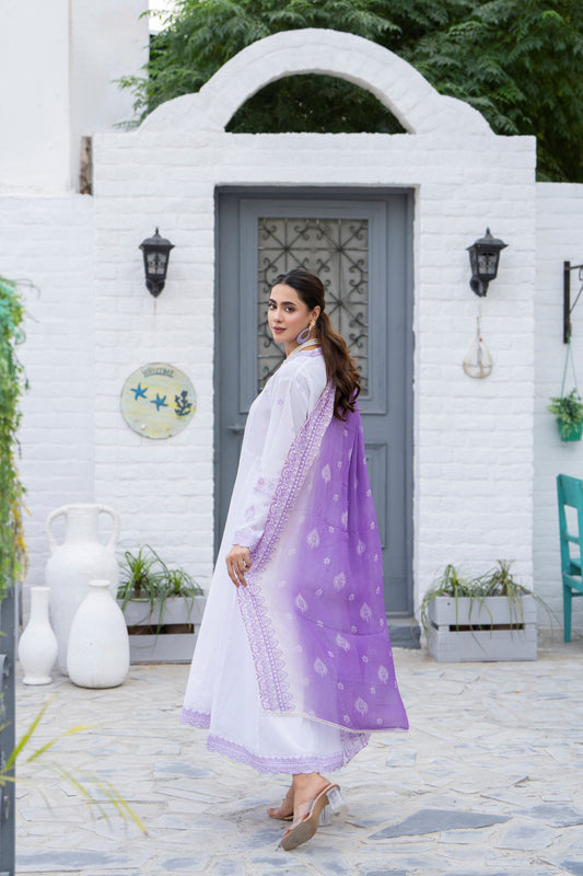 White 3-Piece Embroidered Frock | ZM-24