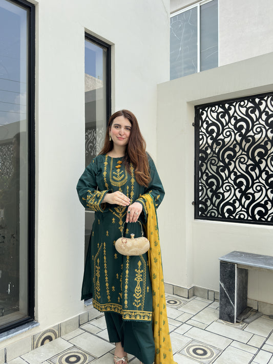 Dk Green 3-Piece Embroidered Cambric Lawn Suit | ZM-34