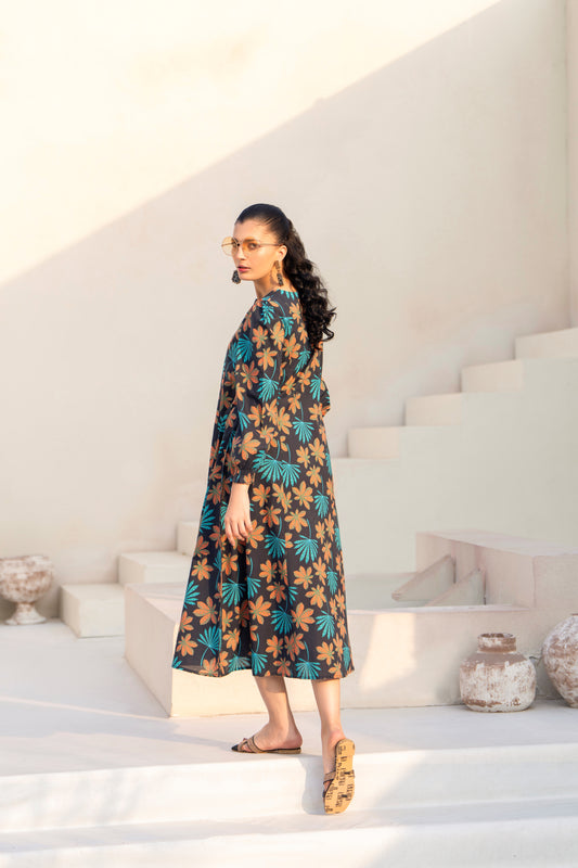 Black 3-Piece printed Cambric Lawn Frock | ZM-32