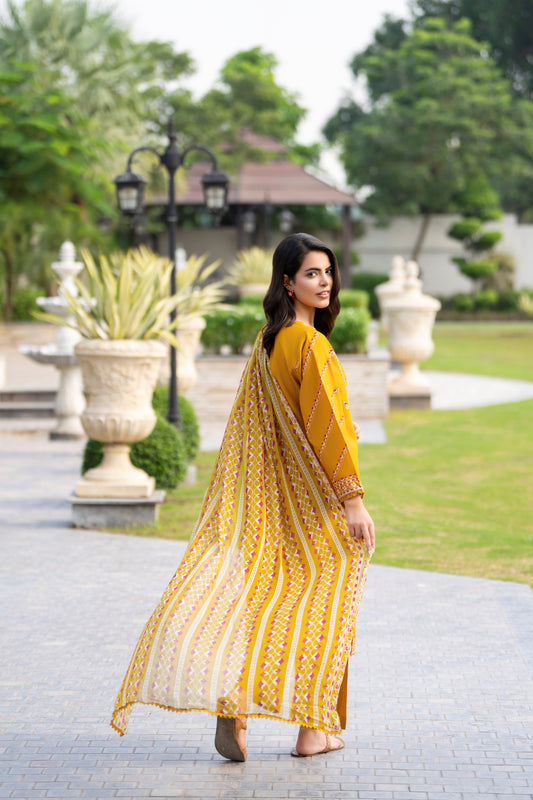 Mustard 3-Piece Embroidered Cambric Lawn Suit| ZM-28