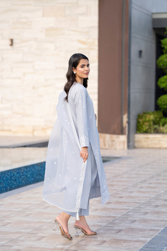 Grey 3-Piece Embroidered Cambric Lawn Suit| ZM-30