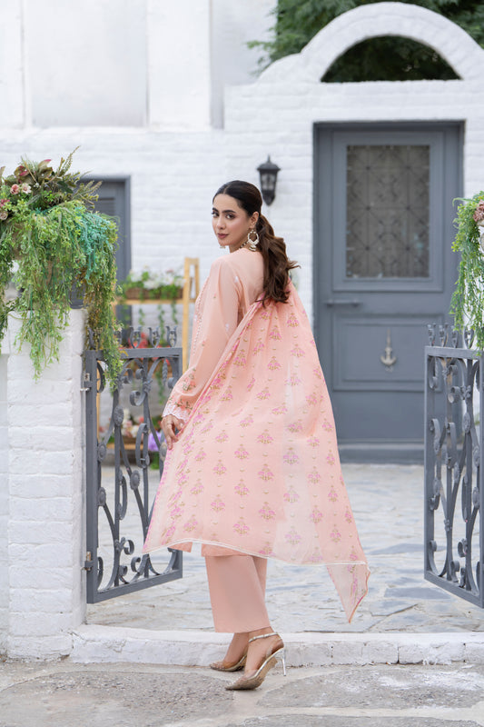 Peach 3-Piece Embroidered Cambric Lawn Suit| ZM-23